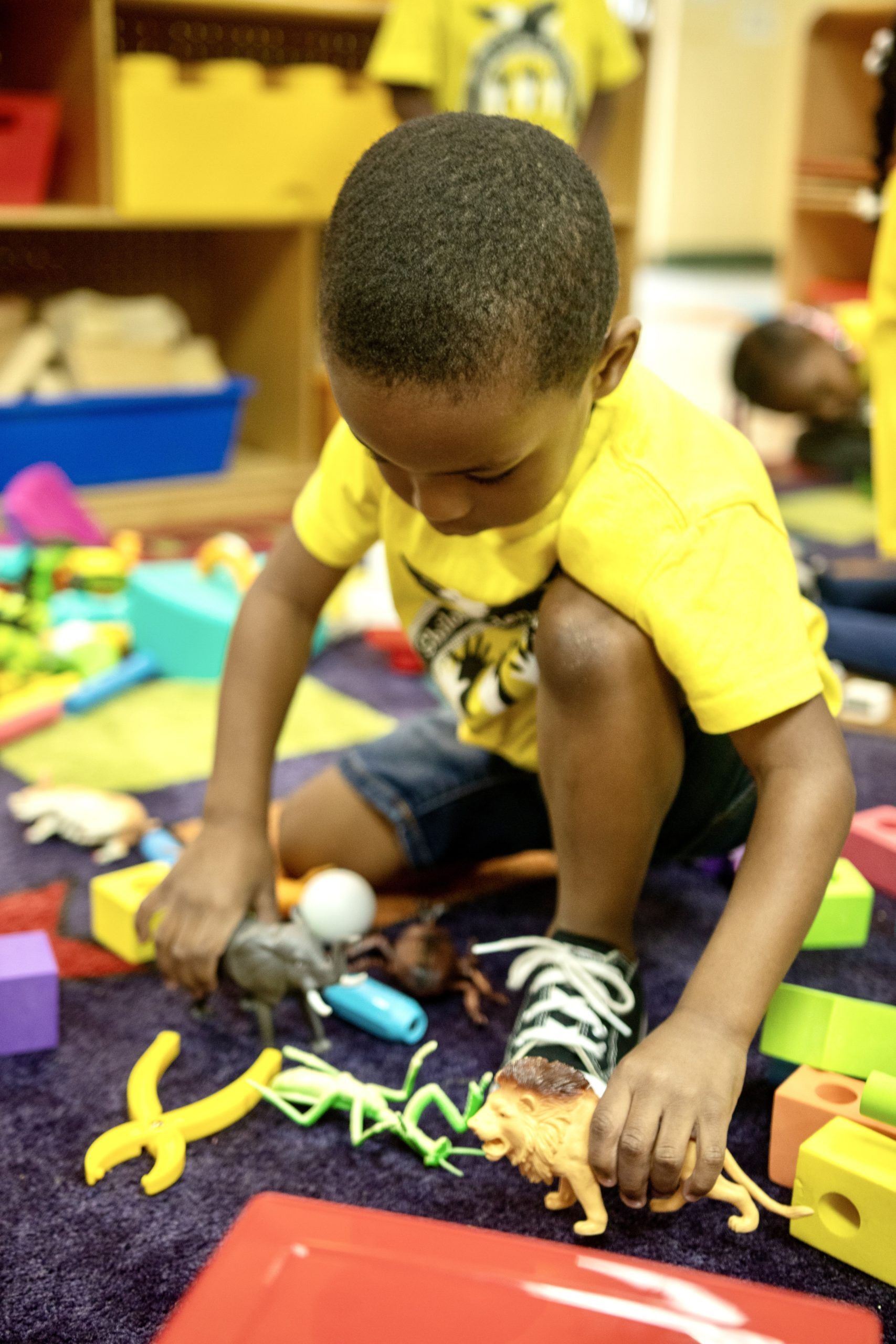 With an array of fun-filled learning centers, our preschool child development program focuses on building cognitive performance through child-initiated, cooperative play. Our teachers introduce these active and enthusiastic learners to a more structured curriculum and new academic concepts in language, literacy, mathematics, and science. With a consistent daily schedule, classroom roles, healthy meals, and focused enrichment classes, our three- and four-year-olds gain a sense of self-reliance and independence.